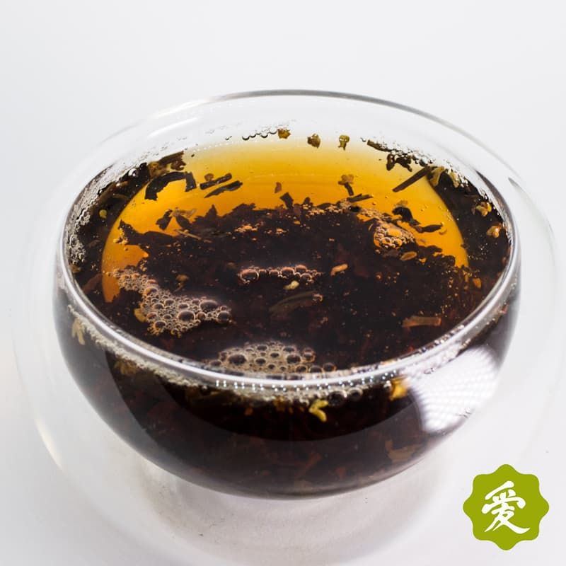 Как заваривать: чай Гуй Хуа Хун Ча с османтусом следует заваривать в стеклянной посудине – так можно наблюдать за красивым раскрытием и кружением нежно-желтых цветов османтуса. На 150 мл воды достаточно 1 чайной ложки сухой смеси, заливают чай водой температурой 95 градусов и настаивают 5 минут. Повторно заваривать чай можно до пяти раз.