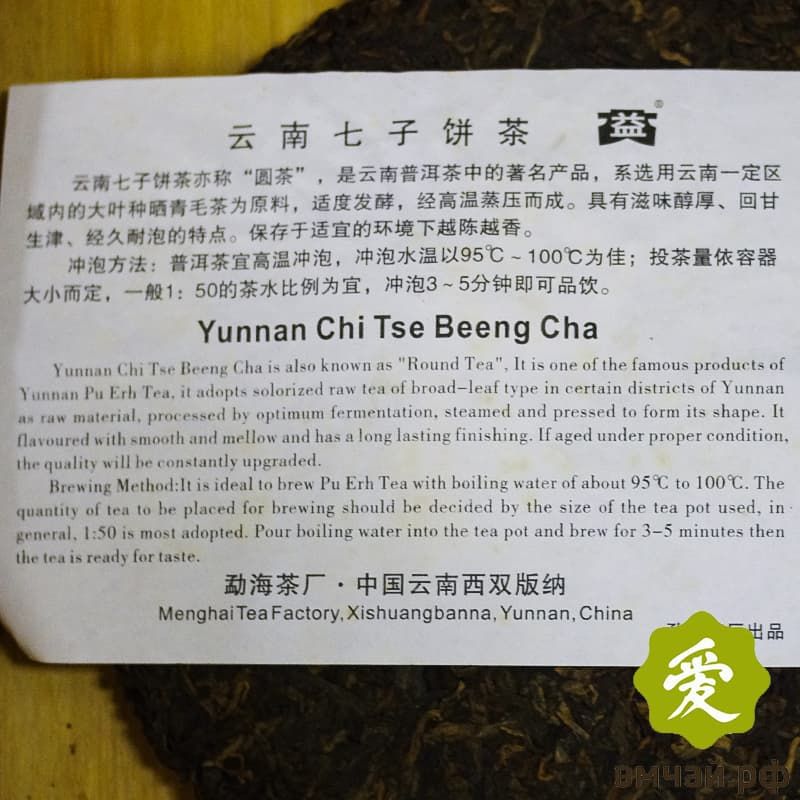 Шу Пуэр, Ба Да Шань Гун Тин, Менхай, 100 г