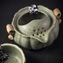 Своеобразный набор для чаепития — чайник и пиала, которая также выполняет роль крышки. Пара выполнена в классическом дизайне по природным мотивам (тыква).