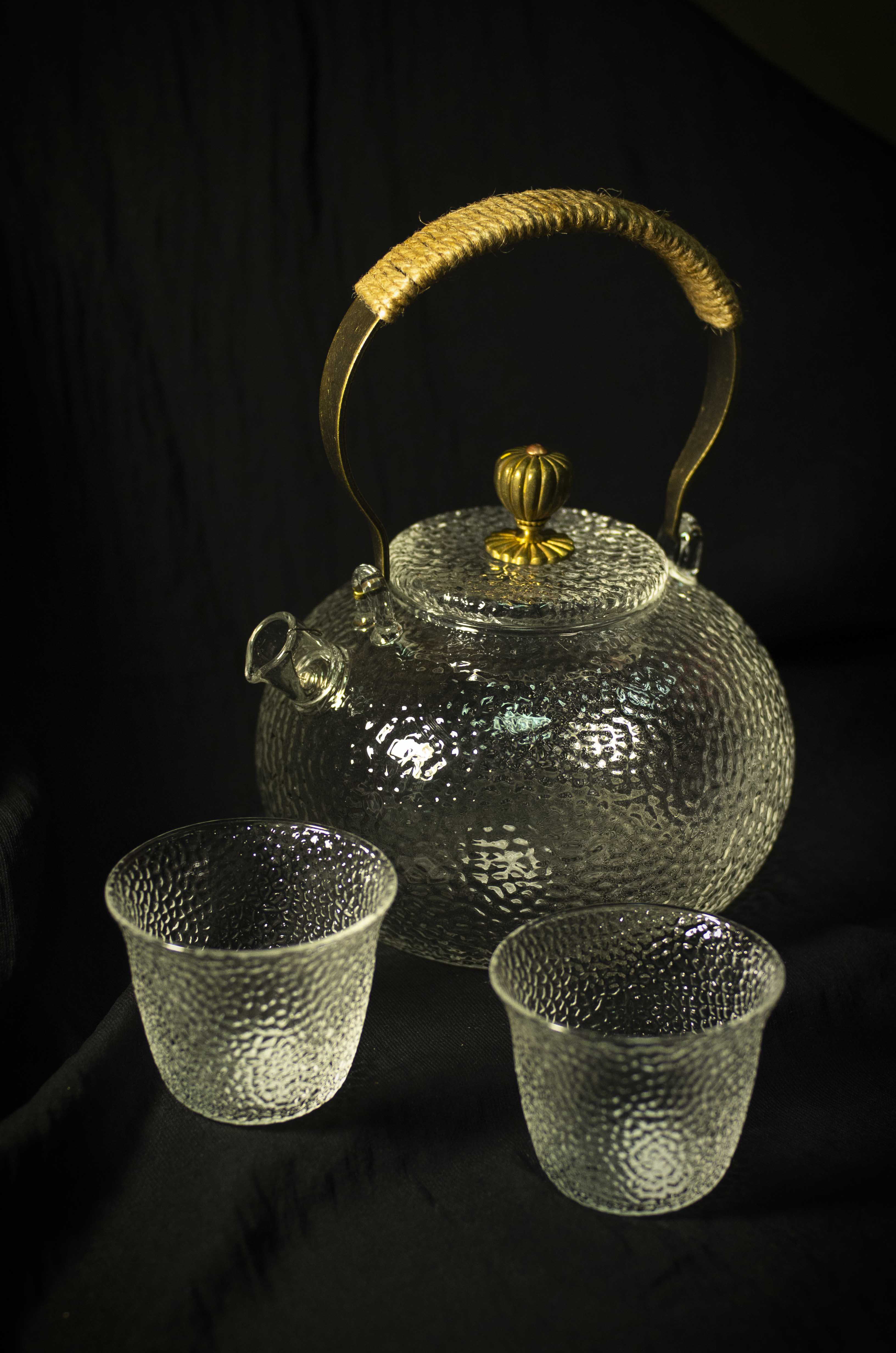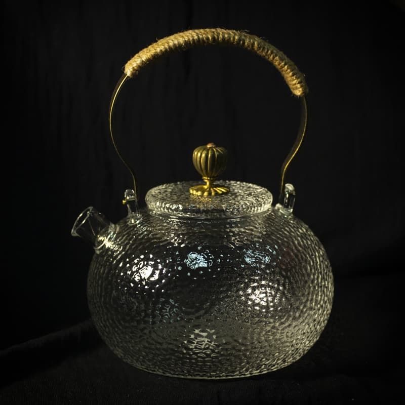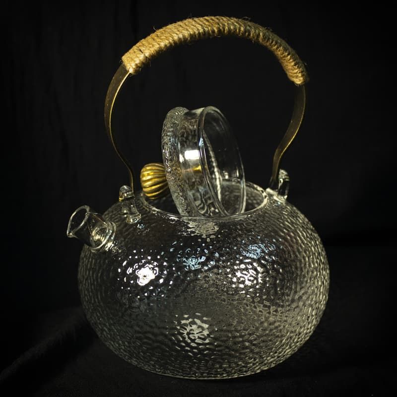 Удобный стеклянный чайник с фильтром-пружинкой в носике. Чай заваривается непосредственно в корпусе. Прозрачность стекла позволяет насладиться видом раскрывающегося чайного листа. В таком чайнике эффектно будут смотреться улуны, цветочный и связанный чай. Металлическая ручка прикреплена к чайнику по старинному принципу котелка, то есть чайник висит на ней, поэтому данная модель в использовании требует особой сосредоточенности и аккуратности.